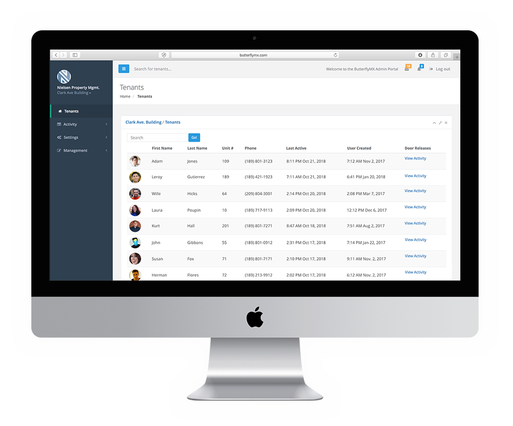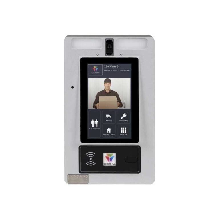 7″ Surface mount ButterflyMX Video Intercom for building entrance door Visitors access control. Smartphone Application to see who is at the building front door.